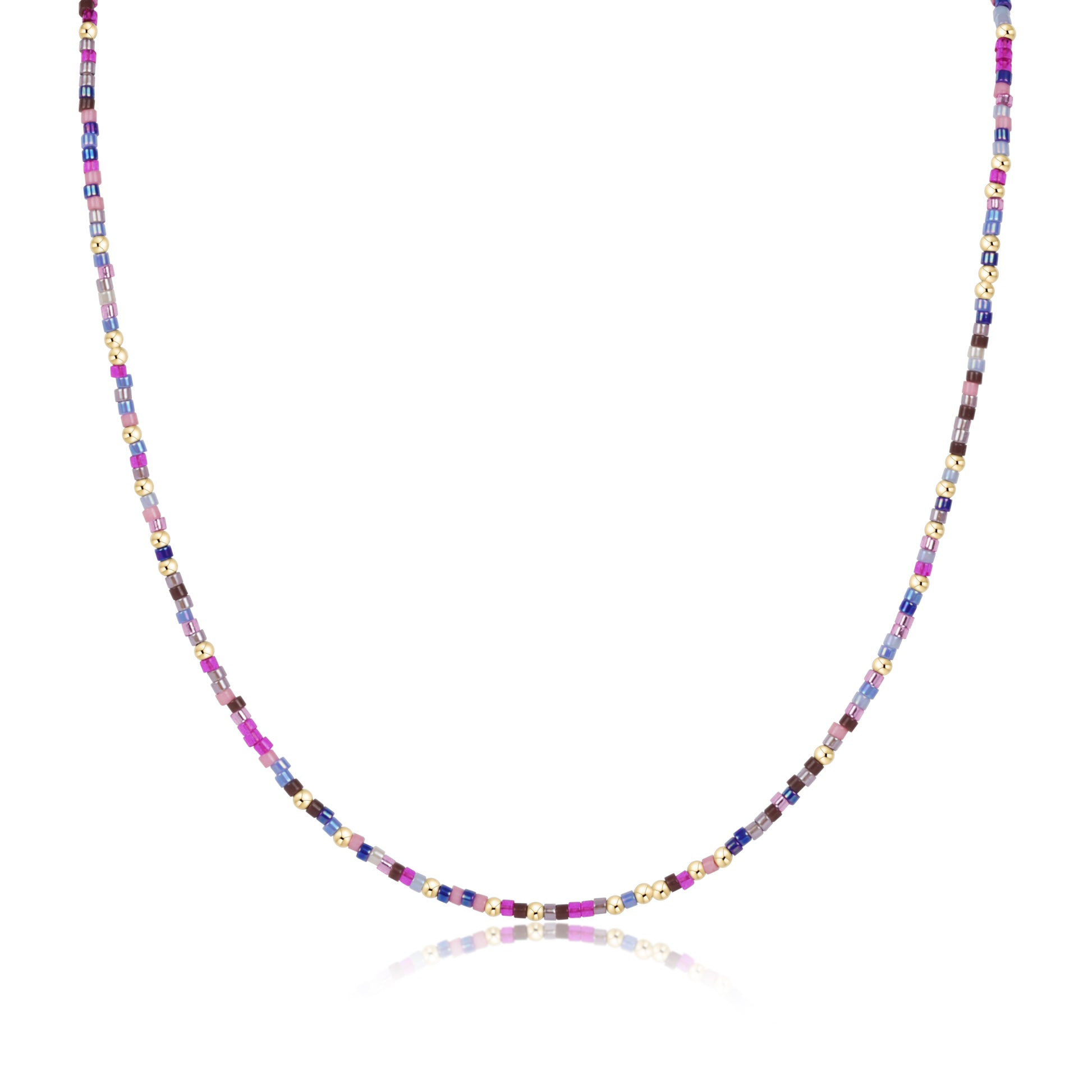 - Made with various colors of randomly mixed 2mm seed beads and 2mm 14k gold-filled beads