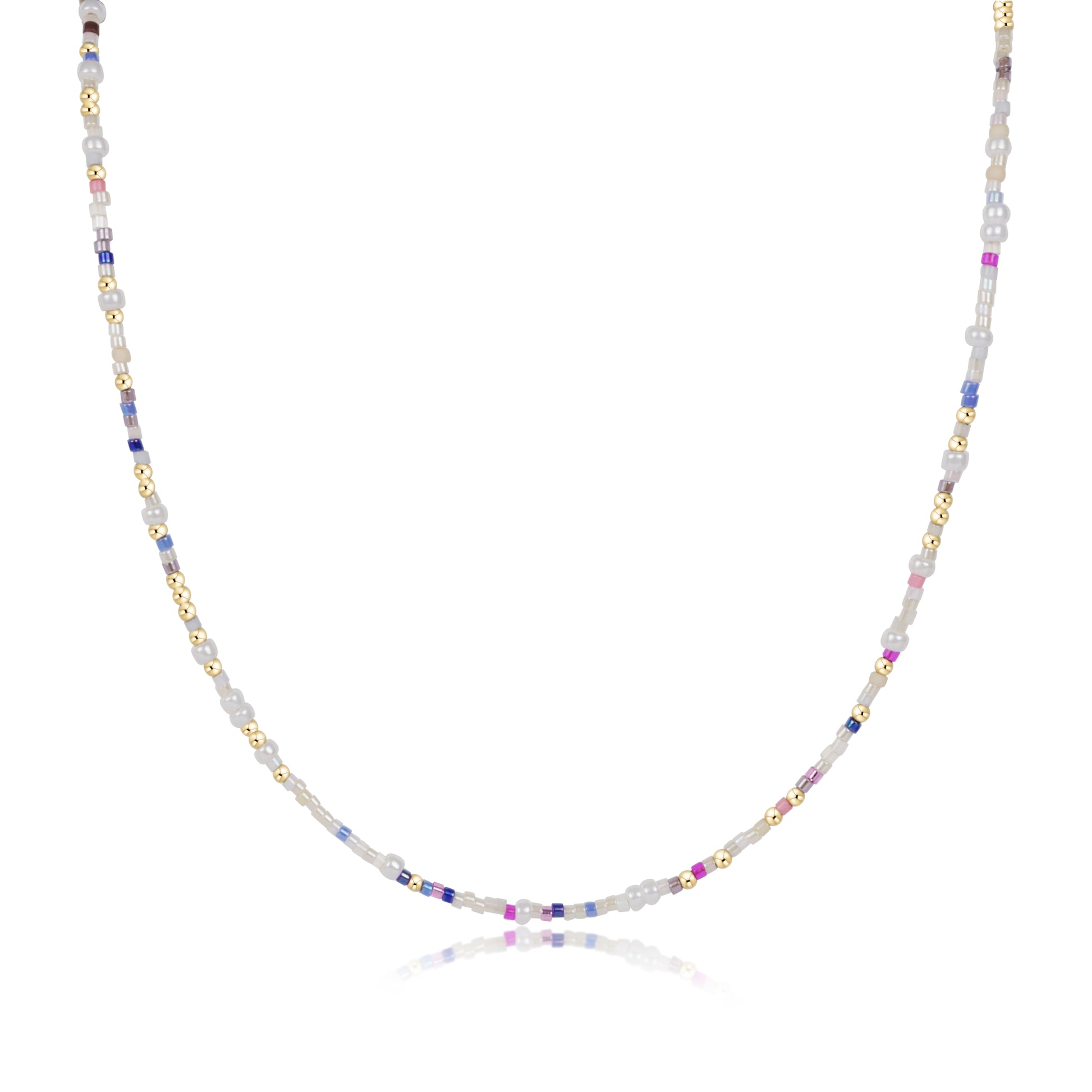 - Made with various colors of randomly mixed 2mm seed beads and 2mm 14k gold-filled beads