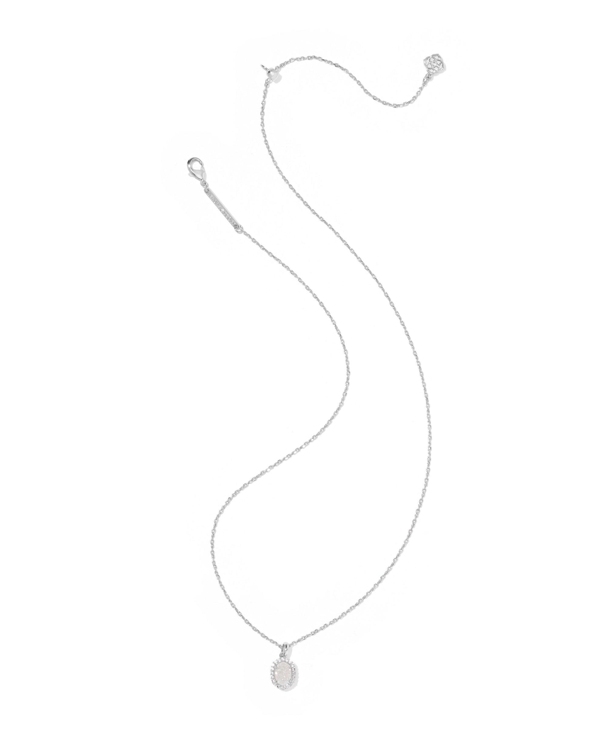 Daphne Silver Crystal Frame Short Pendant Necklace in Iridescent Drusy
