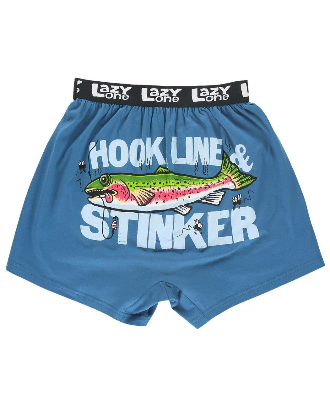 Don't make a big stink over what boxers to wear. Get our Hook, Line and Stinker boxers and add some fun and comfort to your daily wear. Made from soft 100% combed cotton knit, our boxers have a roomy fit with a button fly and a plush-backed elastic band. It's easy to see why the butt stops here!