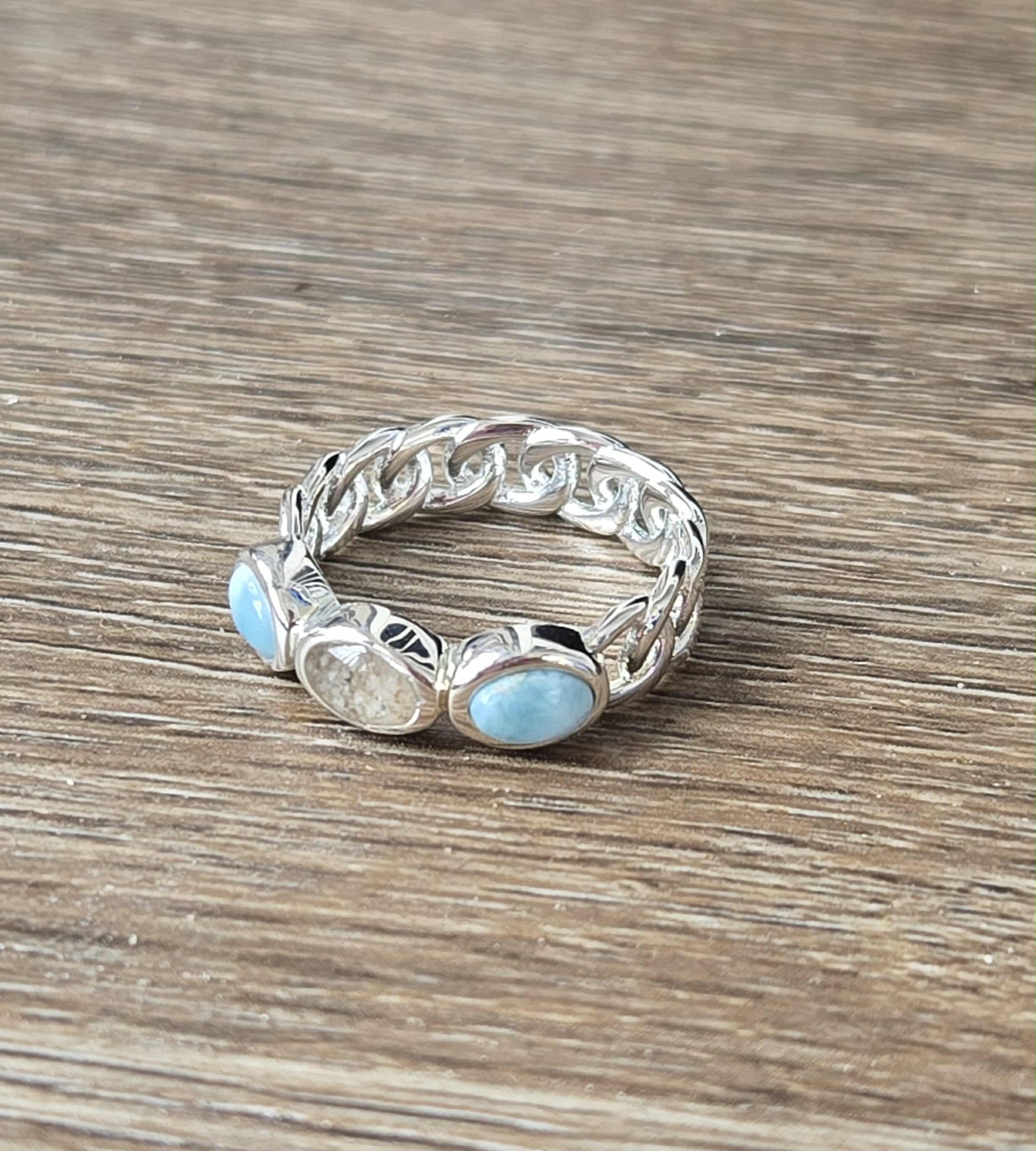 Larimar is a rare gemstone that exhibits variations of hue and pattern that make it just as unique and beautiful as your favorite ocean. Please keep in mind that each stone will have waves of blue, teal, seafoam and white making no two stones exactly the same.