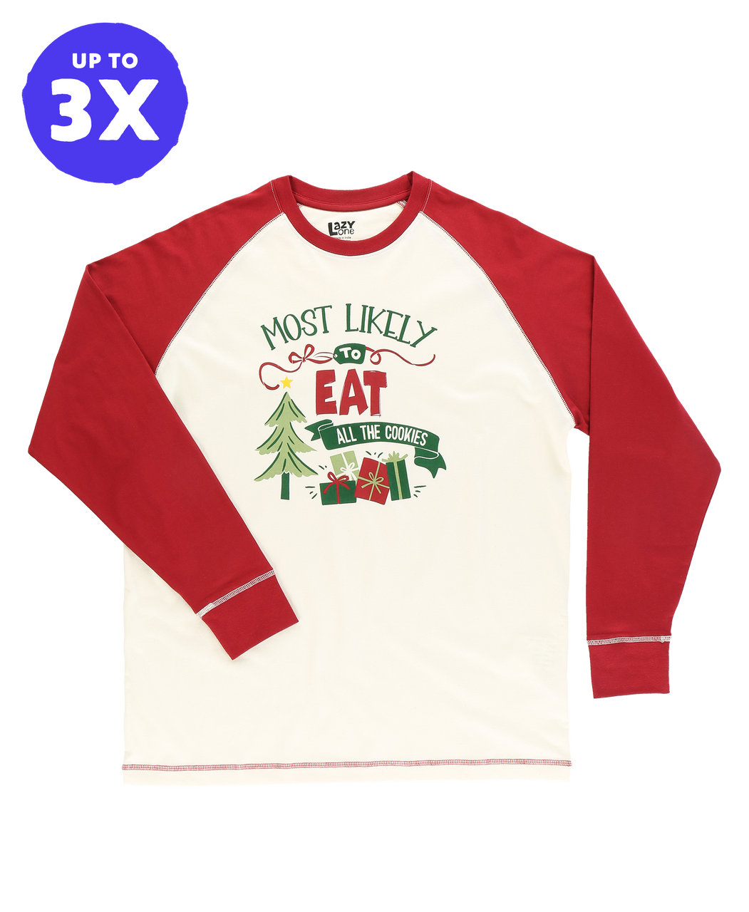 Christmas time is cookie time and we won't get upset with you if you want to eat all the cookies. We just ask that you do it in style with our Most Likely Eat Cookies long sleeve pajama tee. Made with 100% combed cotton it will keep you comfortable and warm all sleep long. Matching pj pants can be purchased separately.