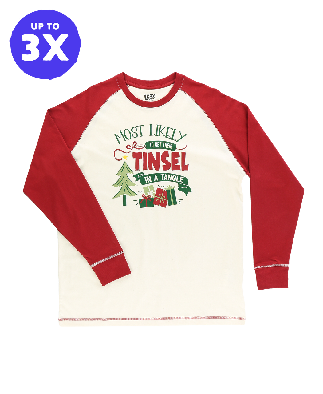 No matter how much you tinsel gets tangled this Christmas season you can be comfy and cozy in our Most Likely Tinsel Tangle long sleeve pajama tee. Made with 100% combed cotton it will keep you comfortable and warm all sleep long. Matching pj pants can be purchased separately.