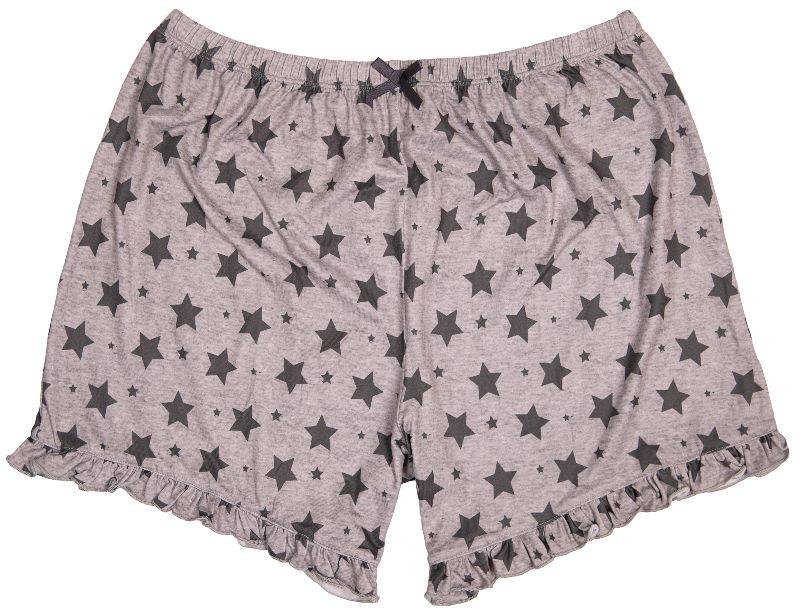 Ruffle lounge shorts with a satin draw string, and elastic waistband in star print.