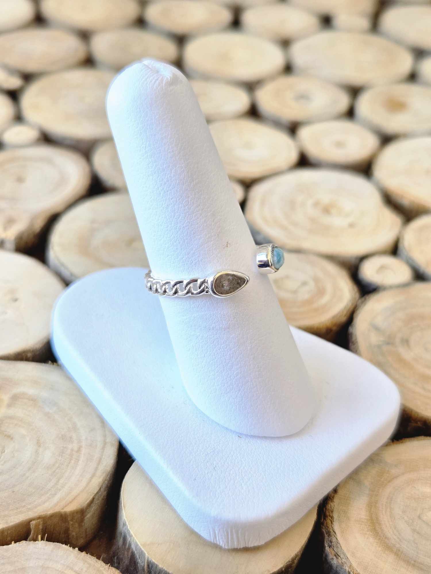 Stepping Stone Ring - Larimar & Sand